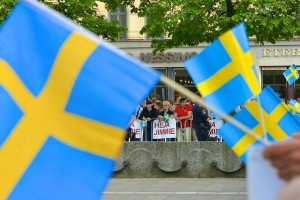 SD-sympatisører på Norrmalmstorg før EU-valget 2014